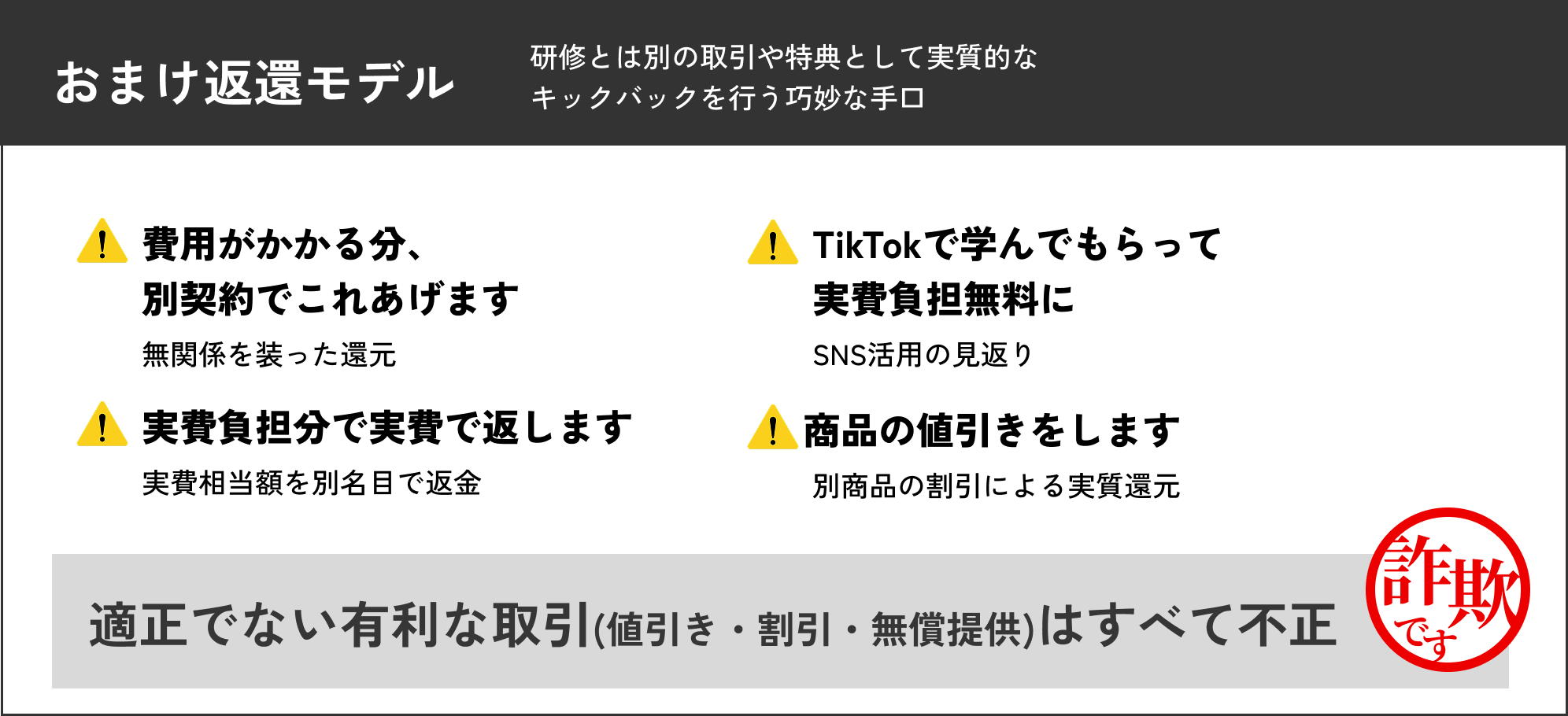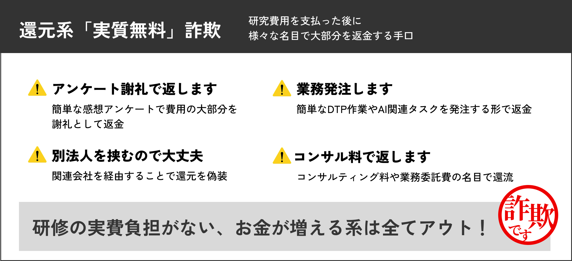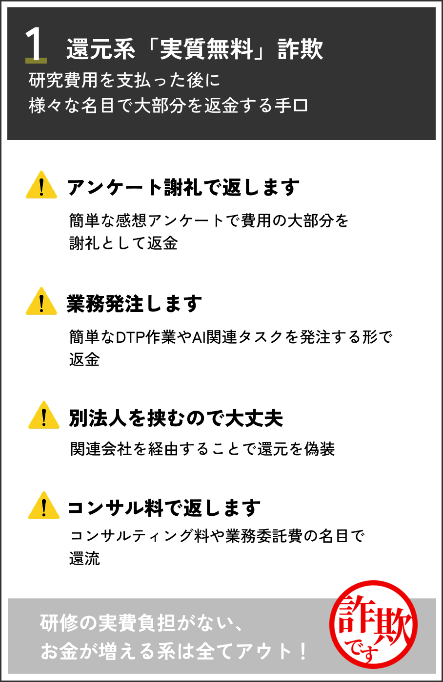 研修後に「感想文提出」「広告レビュー」などを名目にお金を返すやり方。