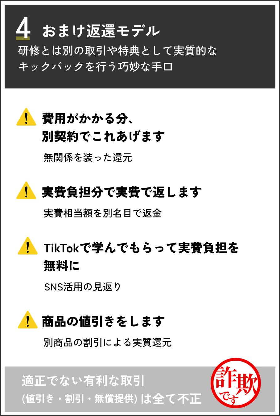 最も多い4つの違反パターンとその見極め方
