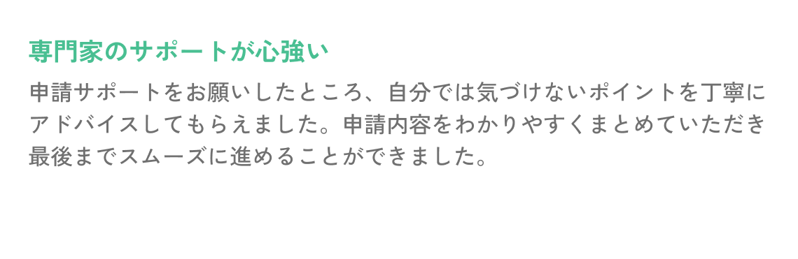 申請に関するお手伝いではなく、“共に考えるパートナー”として。