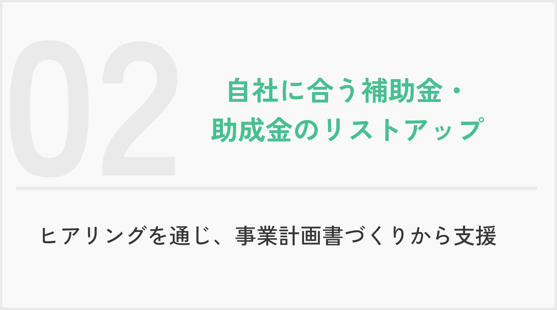 また、活用する補助金・助成金によっては、提携する専門家をご紹介することもあります。